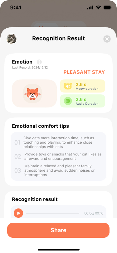 Based on the annotation and training of over 50,000 pet voices, it effectively analyzes the seven emotions of pets.