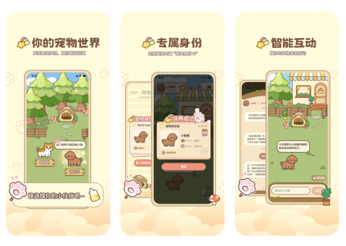 Pet life cycle service APP. Pet language translation, pet training courses, virtual pet chat, pet health management.